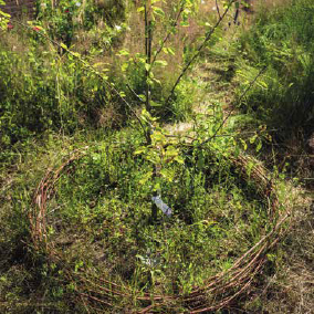 De paden: vorige winter wilde ik de paden in de tuin afzetten met vlechtwerk. Uiteindelijk bleek dat toch niet handig: het raakt snel overgroeid door grassen en is dan lastig weer vrij te maken. Daar komt bij dat het vrij veel onderhoud vraagt. Het hout vergaat immers en moet jaarlijks worden aangevuld. In plaats daarvan heb ik de paden afgezet met gebroken straatstenen. Op die manier heb ik een stapelmuurtje dat er mooi uitziet, dat een heenkomen biedt aan insecten én dat weinig onderhoud nodig heeft. Rond de pruimenboom in het midden van de tuin heb ik wel wilgentakken gebruikt. Voor de ronde vorm zijn die meer geschikt, en het is een minder groot stuk om te onderhouden.